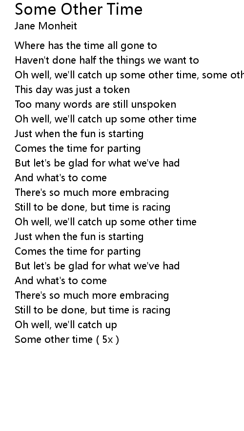 Oh well, we'll catch up some other time, some other time |