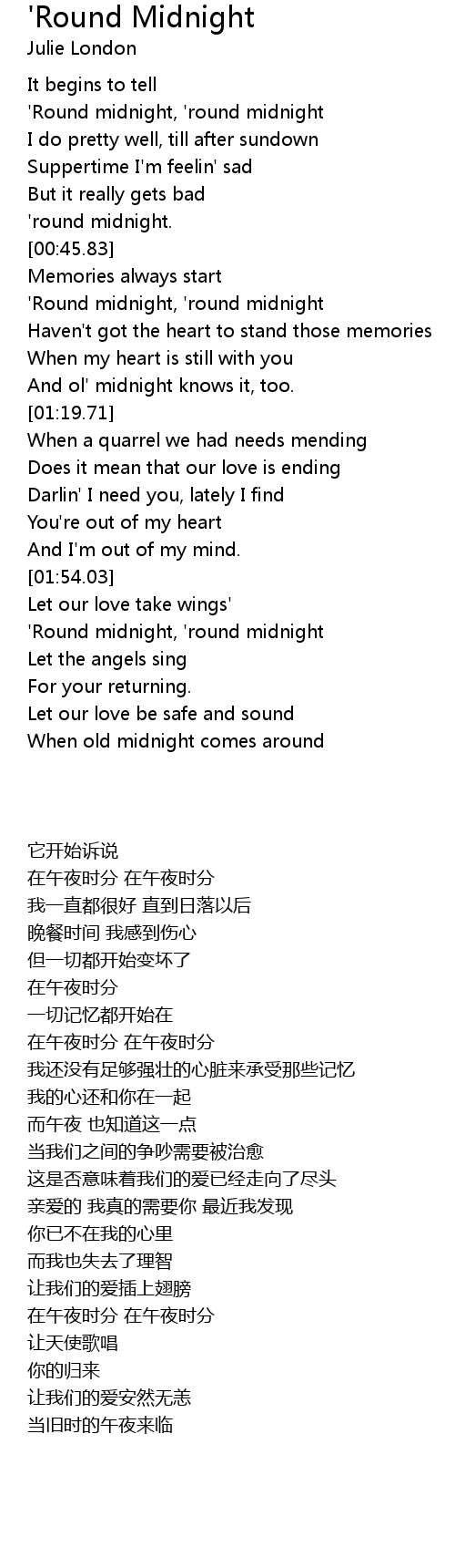 'Round midnight, 'round midnight |