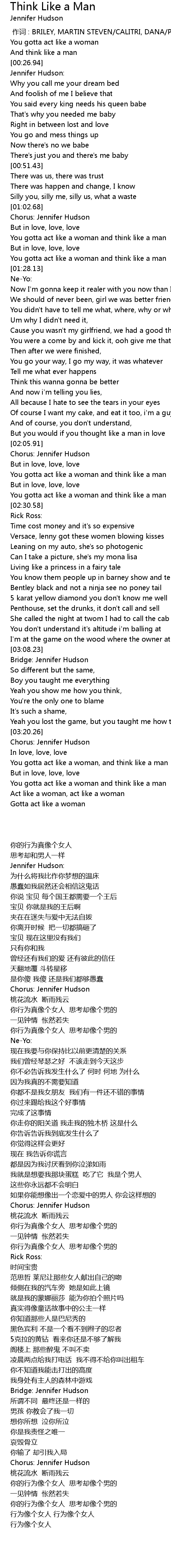 | [03:20.72] | Chorus: Jennifer Hudson |