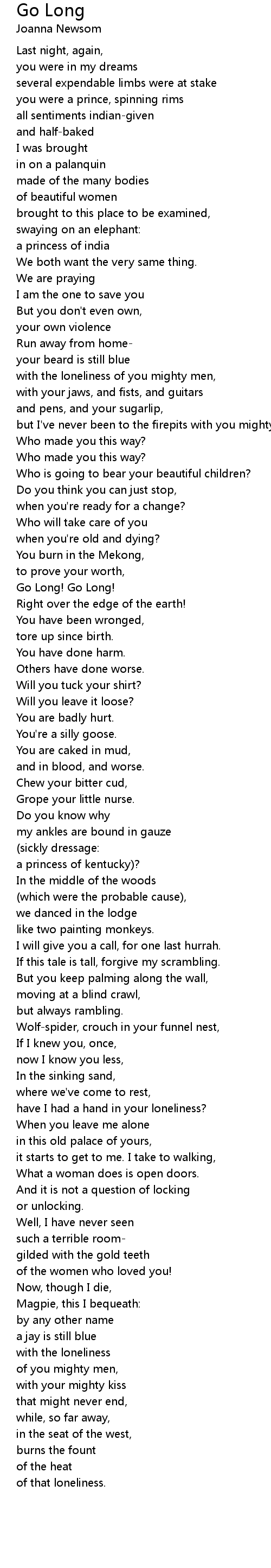 with the loneliness of you mighty men, |