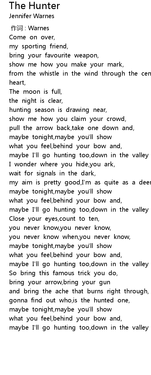 | [02:51.756] | gonna find out who,is the hunted one, |