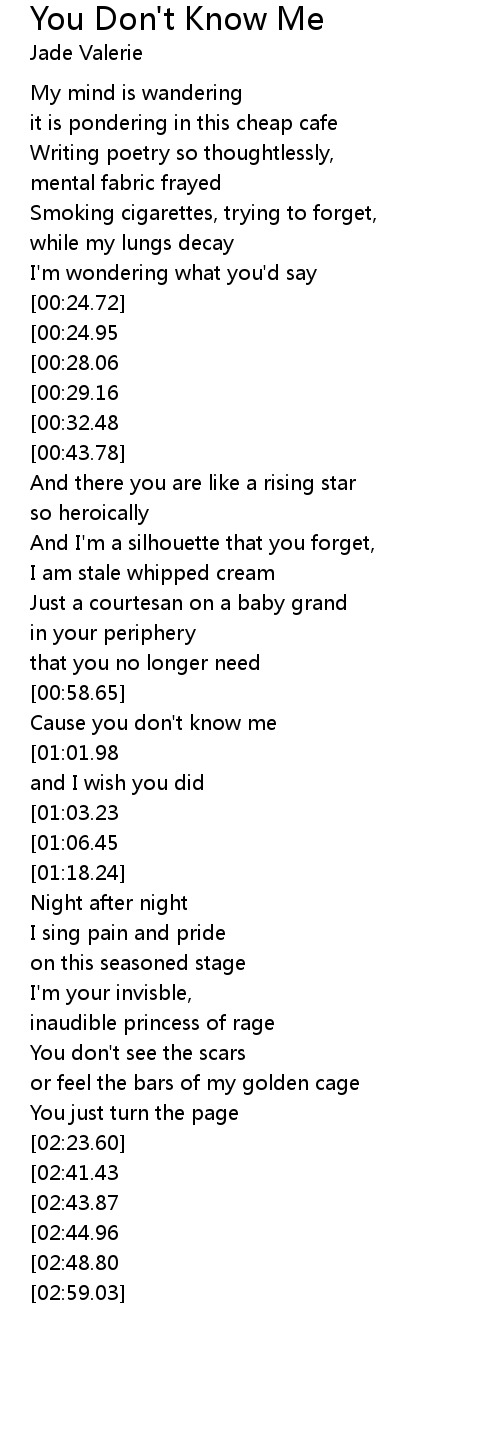 [02:50.10][02:41.43][02:32.94][02:23.83] Cause you don't know me