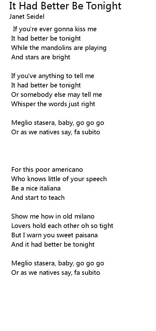 It had better be tonight |