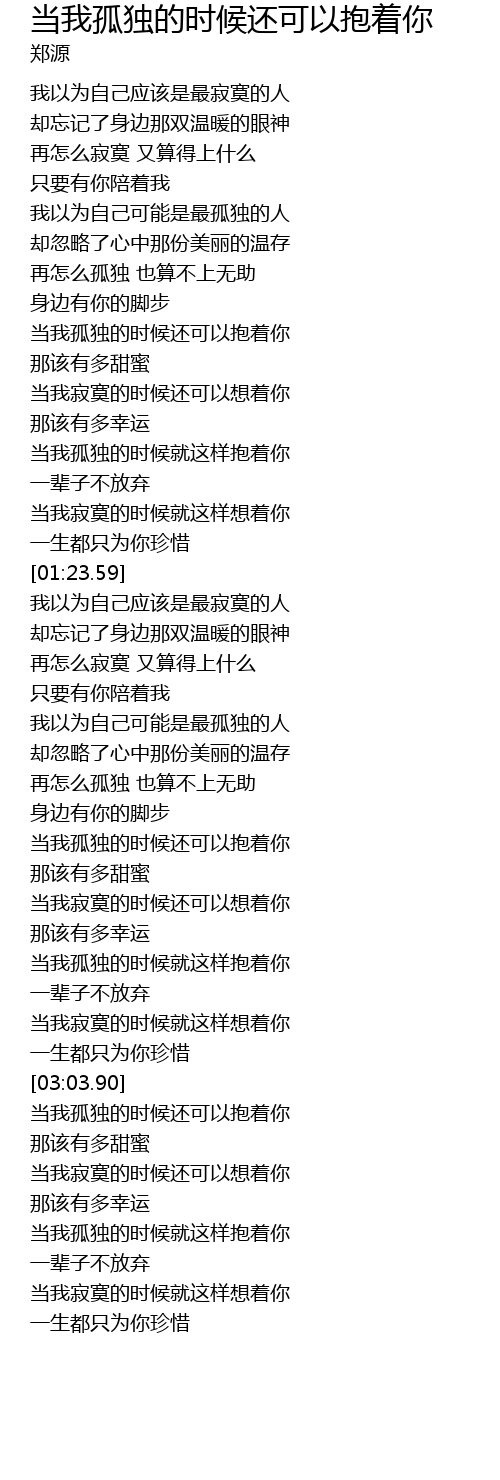 | [00:50.82] | 当我孤独的时候还可以抱着你 |