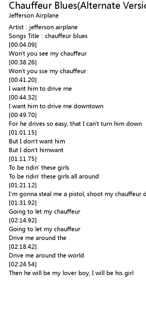 | [00:39.70] | Won't you sse my chauffeur |