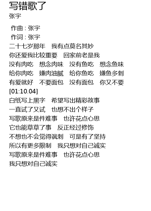 | [00:01.00] | 作词 : 张宇 |