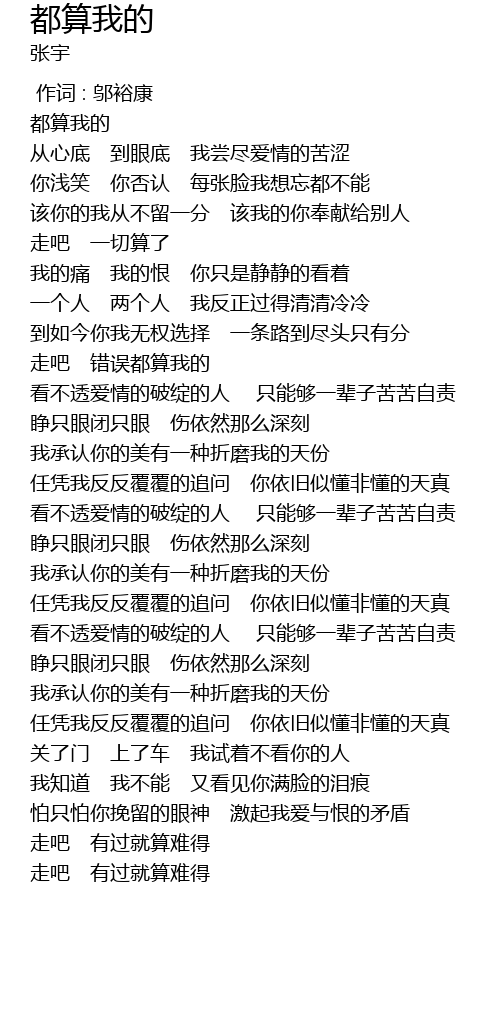 | [00:41.00] | zǒu ba yī qiè suàn le |