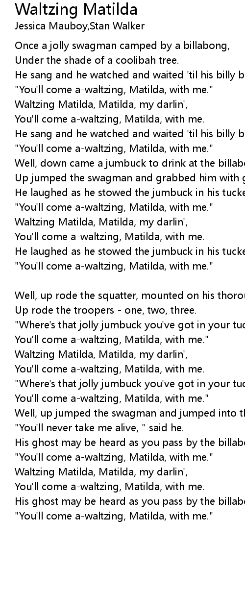 "Where's that jolly jumbuck you've got in your tucker-bag? |