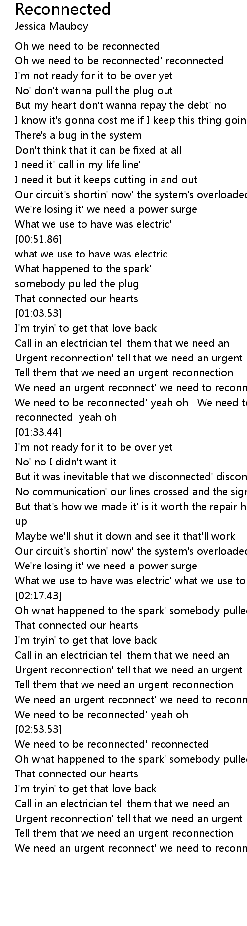 We need to be reconnected' yeah oh We need to be reconnected reconnected yeah oh |