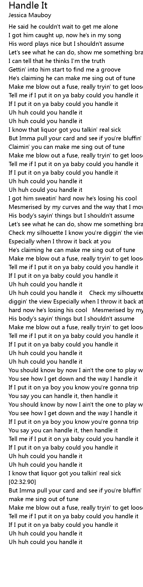 Uh huh could you handle it Check my silhouette I know you're diggin' the view Especially when I throw it back at you I got him sweatin' hard now he's losing his cool Mesmerised by my curves and the way that I move His body's sayin' things but I shouldn't assume |
