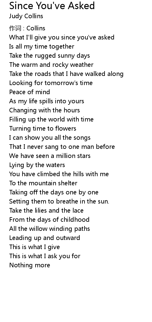 | Song | Since You've Asked |