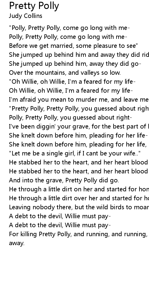 "Pretty Polly, Pretty Polly, you guessed about right- |
