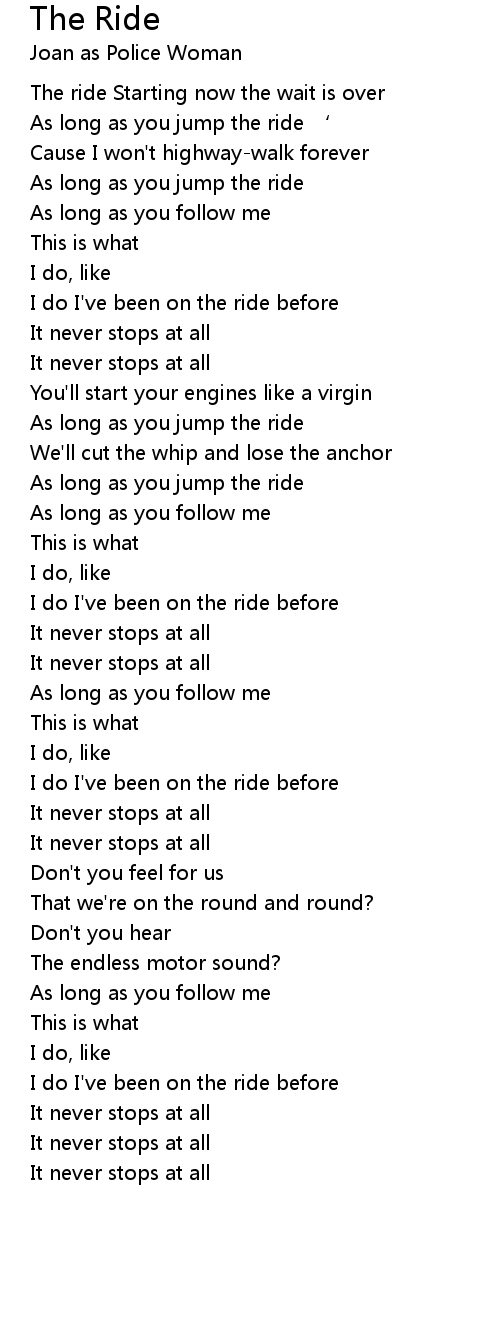 | As long as you jump the ride ‘ | |