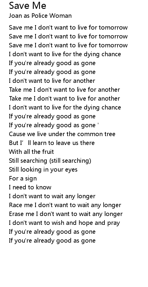 | Save me I don' t want to live for tomorrow | |