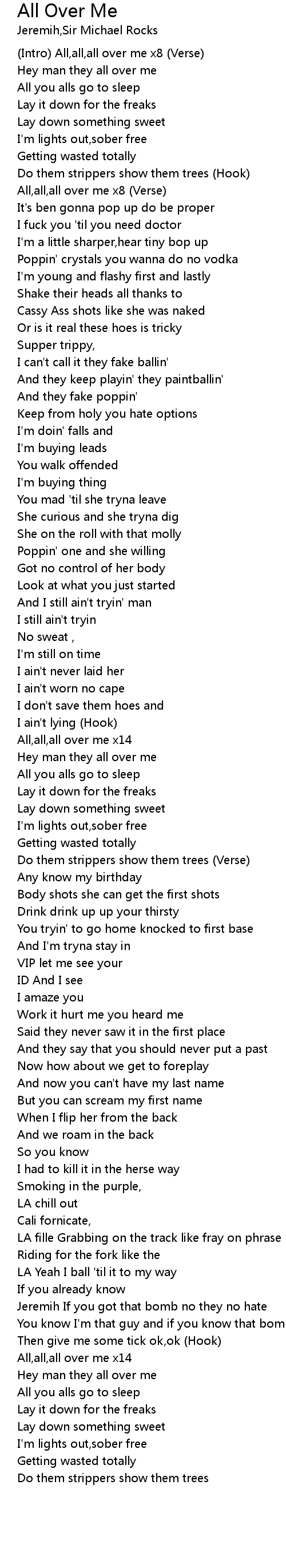 (Intro) All,all,all over me x8 (Verse) |