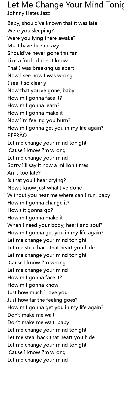 | Song | Let Me Change Your Mind Tonight (Orchestral Version) |