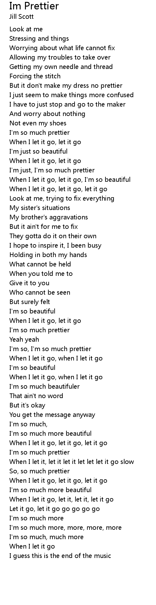 When I let it go, let it go, I'm so beautiful |