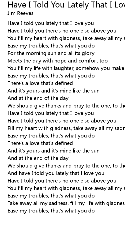 | [01:44.440] | Have I told you lately that I love you |