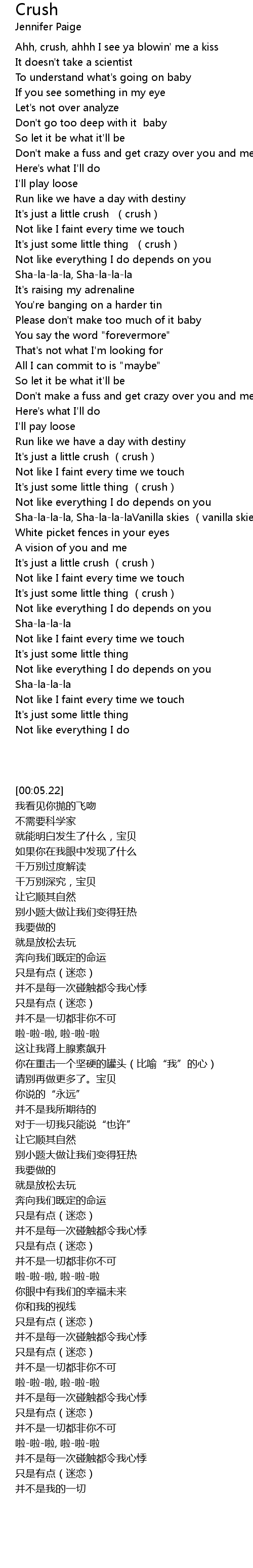 | [00:49.26] | It' s just a little crush crush |