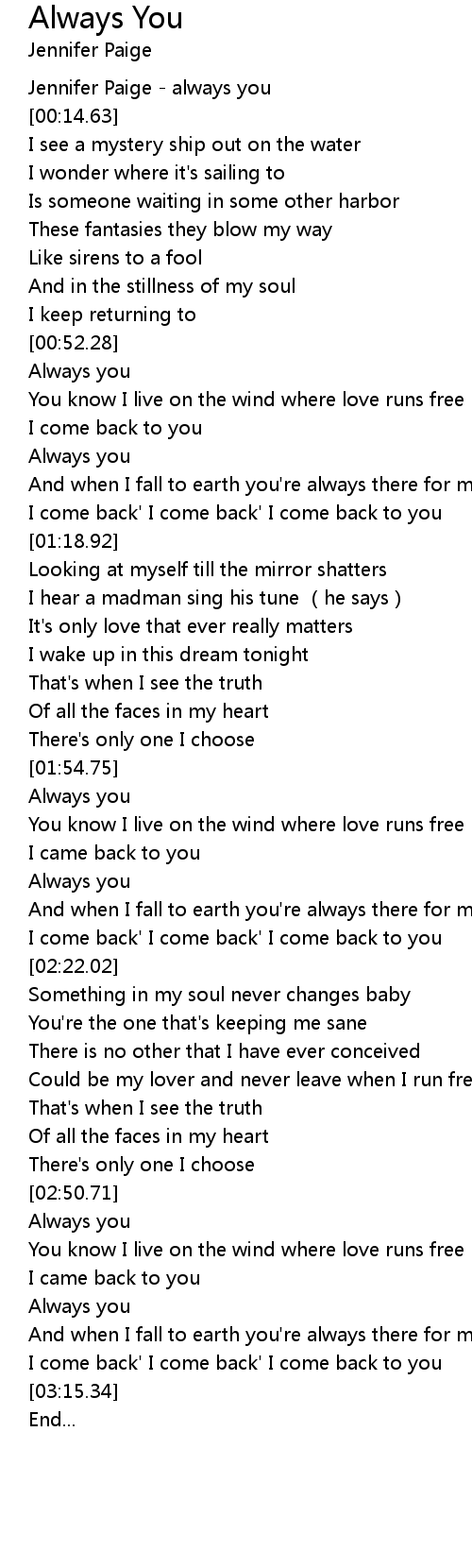 | [03:04.67] | And when I fall to earth you' re always there for me |