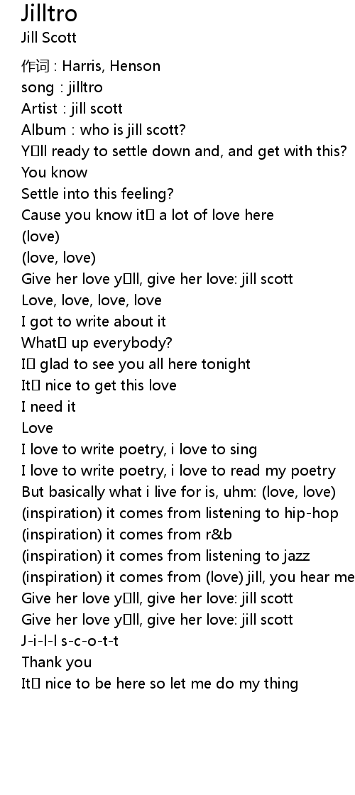 | (inspiration) it comes from (love) jill, you hear me? | |