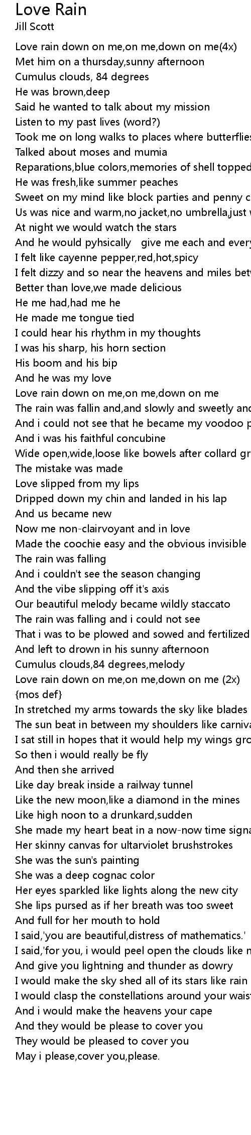 | Love rain down on me,on me,down on me(4x) | |