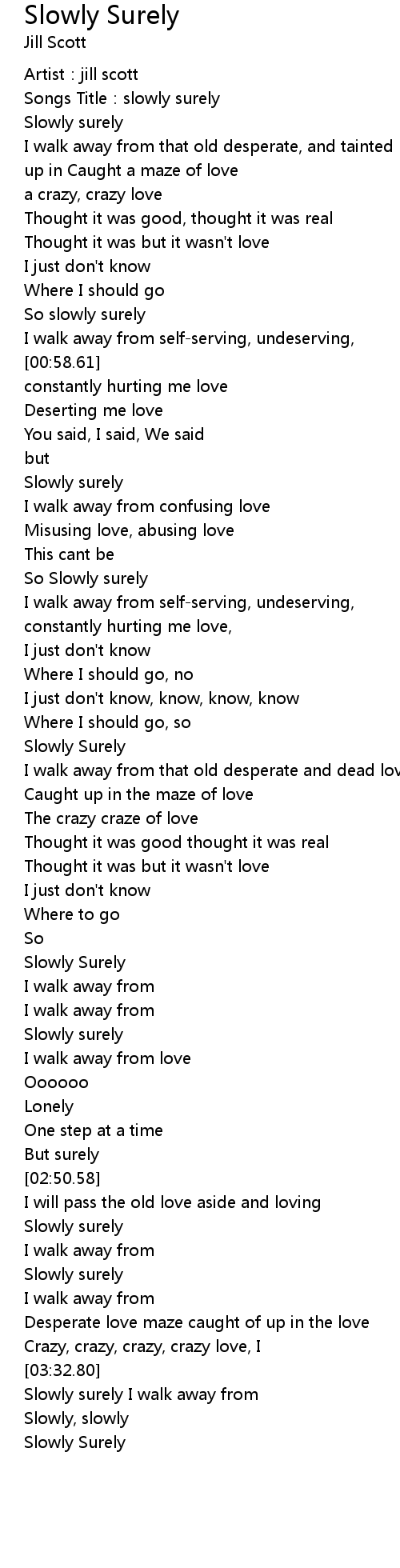 | [00:23.40] | I walk away from that old desperate, and tainted love |