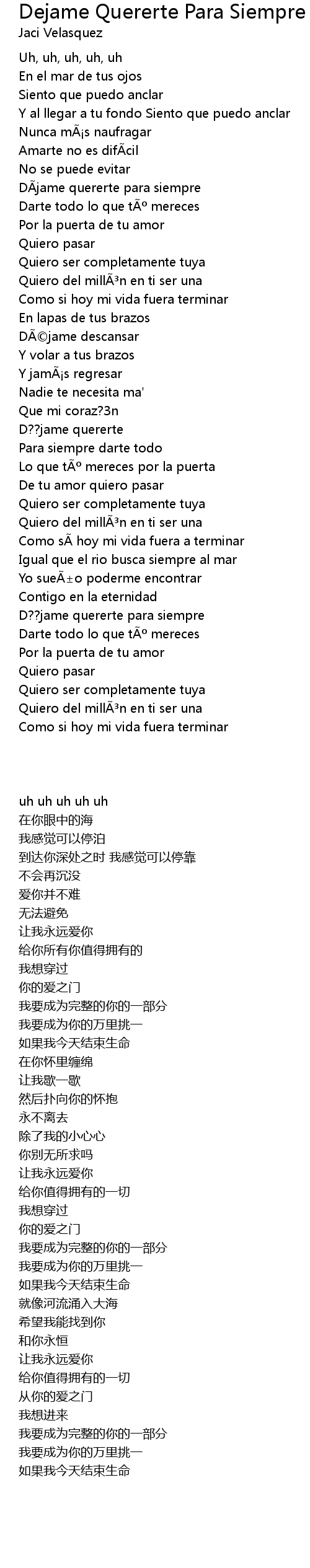 | [02:56.57] | Quiero del mill n en ti ser una |