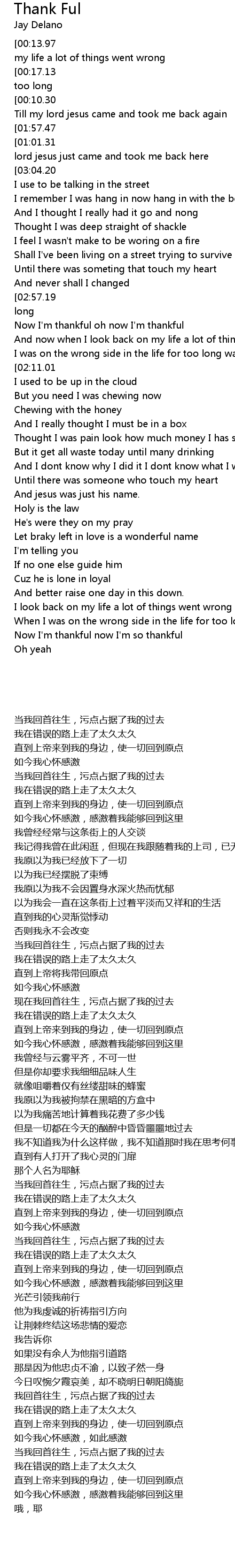 Now I'm thankful oh now I'm thankful |