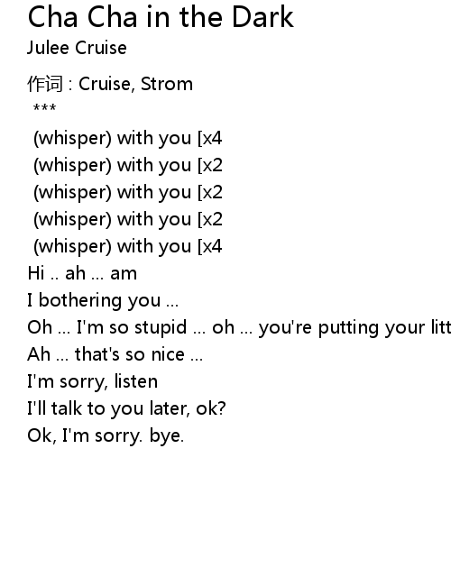 | I want to cha cha in the dark x4 whisper with you x2 | |