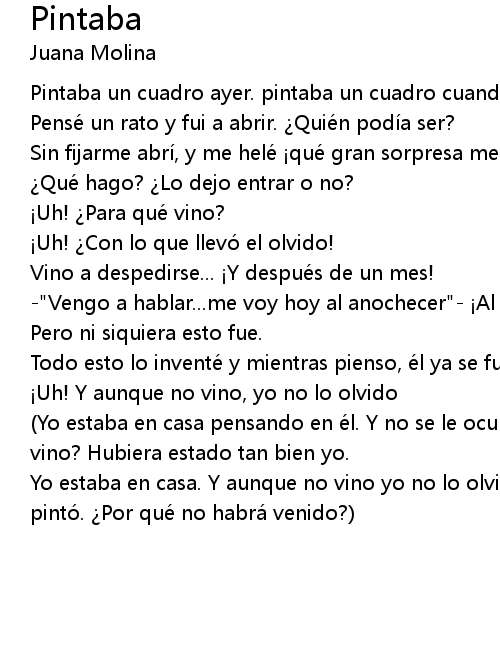 | Yo estaba en casa. Y aunque no vino yo no lo olvido. Pintaba un cuadro y no pinto. Por que no habra venido? |