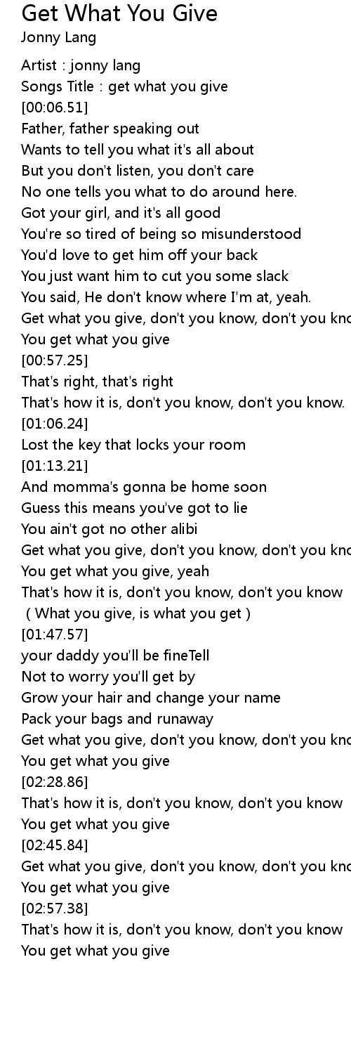 | [00:02.89] | Songs Title: get what you give |