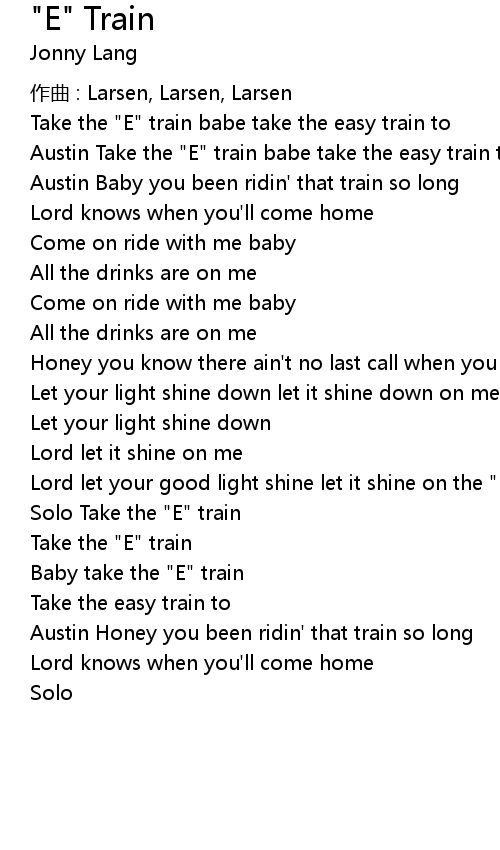 | Honey you know there ain' t no last call when you ride on the " E" | |