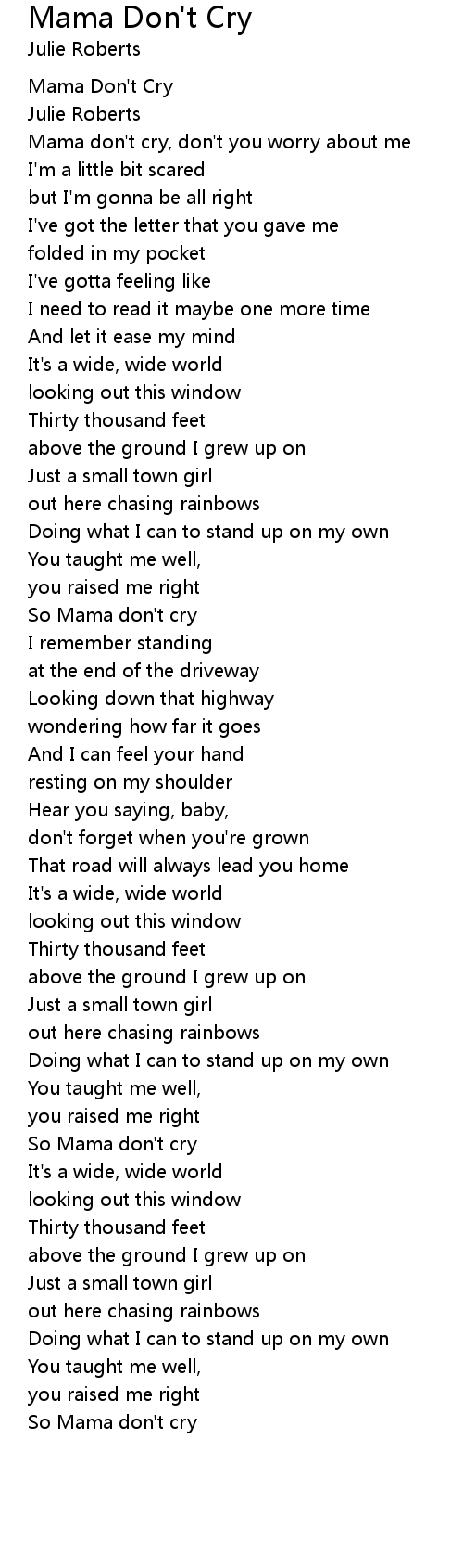 Mama Don't Cry Lyrics