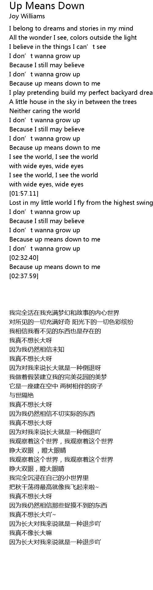 | [00:50.31] | I play pretending build my perfect backyard dreams |