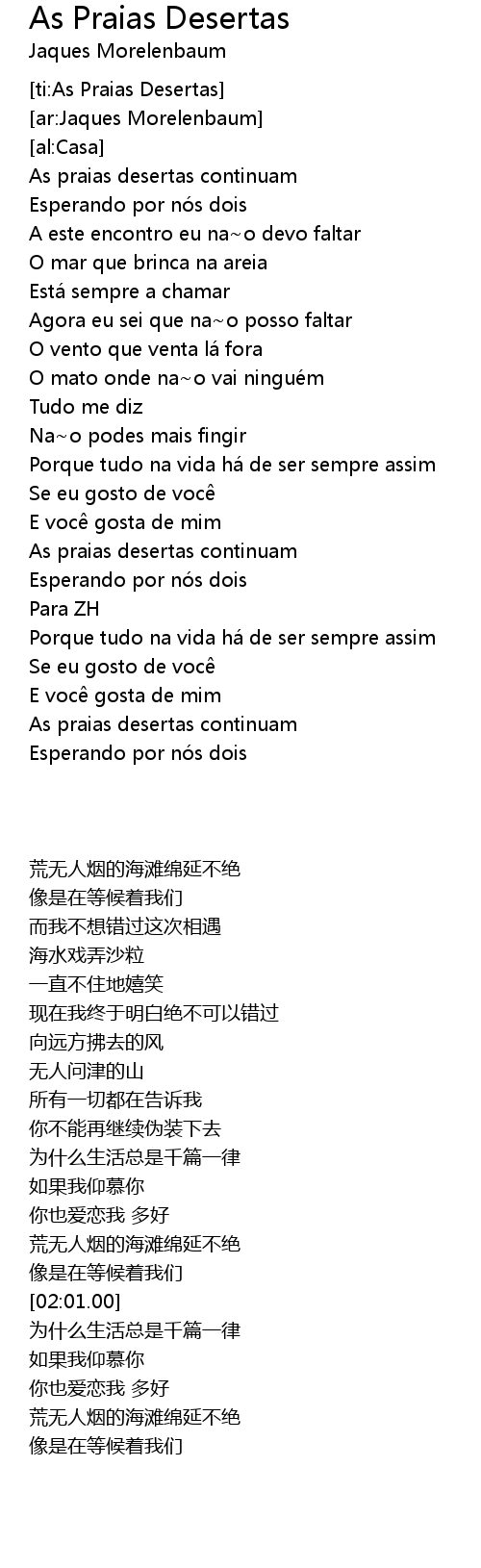 | [01:49.00] | As praias desertas continuam |