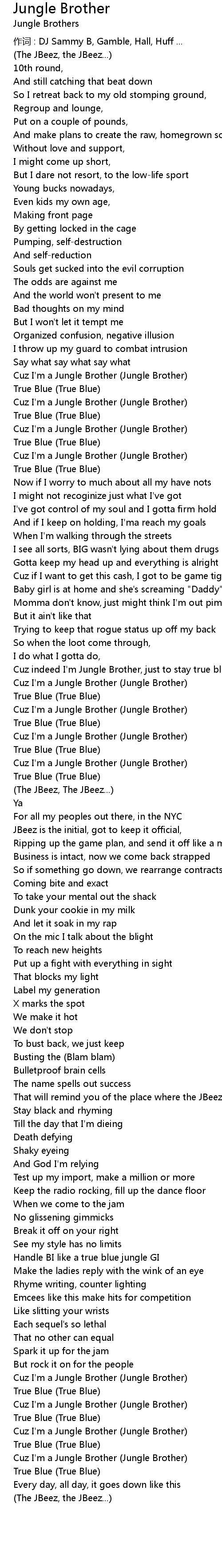 | Cuz indeed I' m Jungle Brother, just to stay true blue. | |