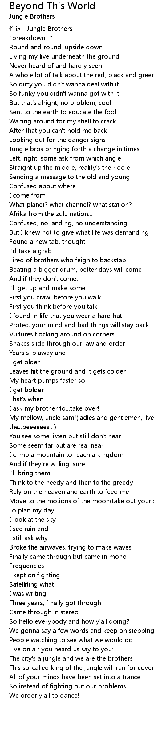| 作词 : Jungle Brothers | |