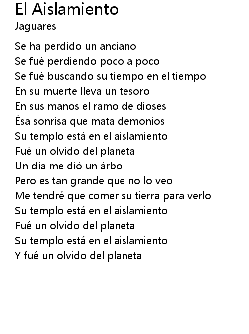 | Song | El Aislamiento |
