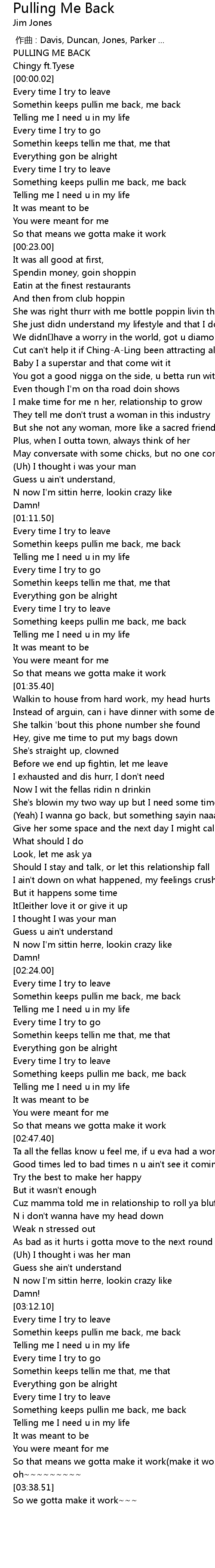 | [01:13.48] | Somethin keeps pullin me back, me back |