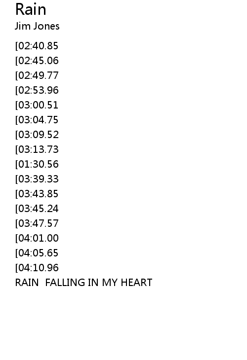 | [04:30.19] | RAIN FALLING IN MY HEART |