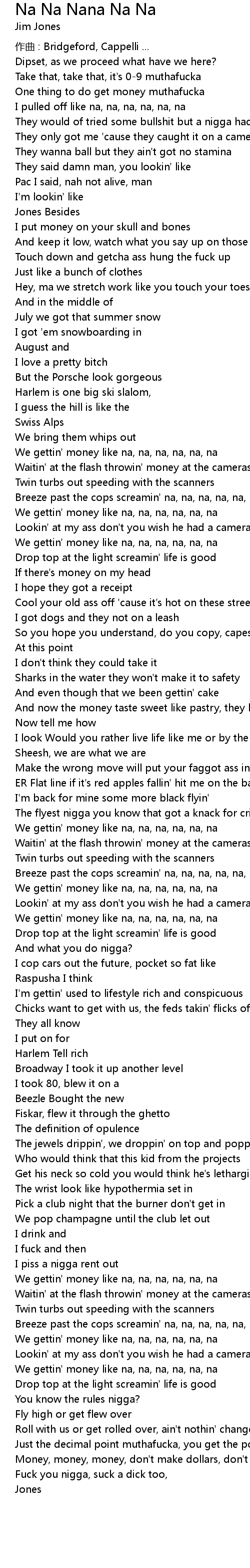 | Breeze past the cops screamin' na, na, na, na, na, na | |
