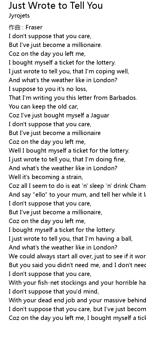 | I just wrote to tell you, that I' m doing fine, | |