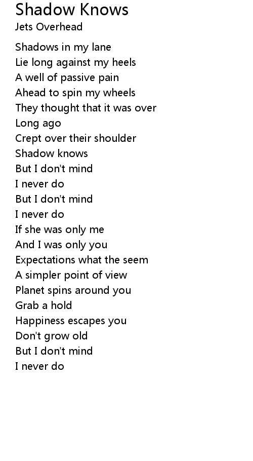 | Song | Shadow Knows |