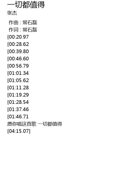 | [04:03.92] | 愿你唱这首歌 一切都值得 |
