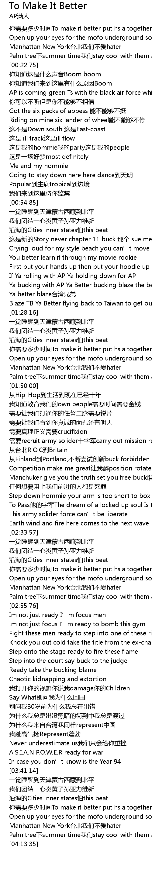| [04:00.91] | 你需要多少时间To make it better put hsia together |
