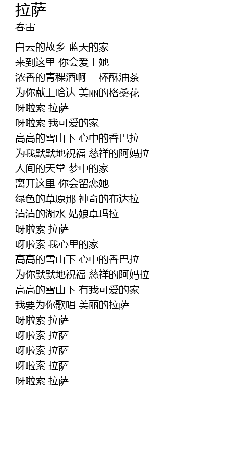拉萨 la sa Lyrics
