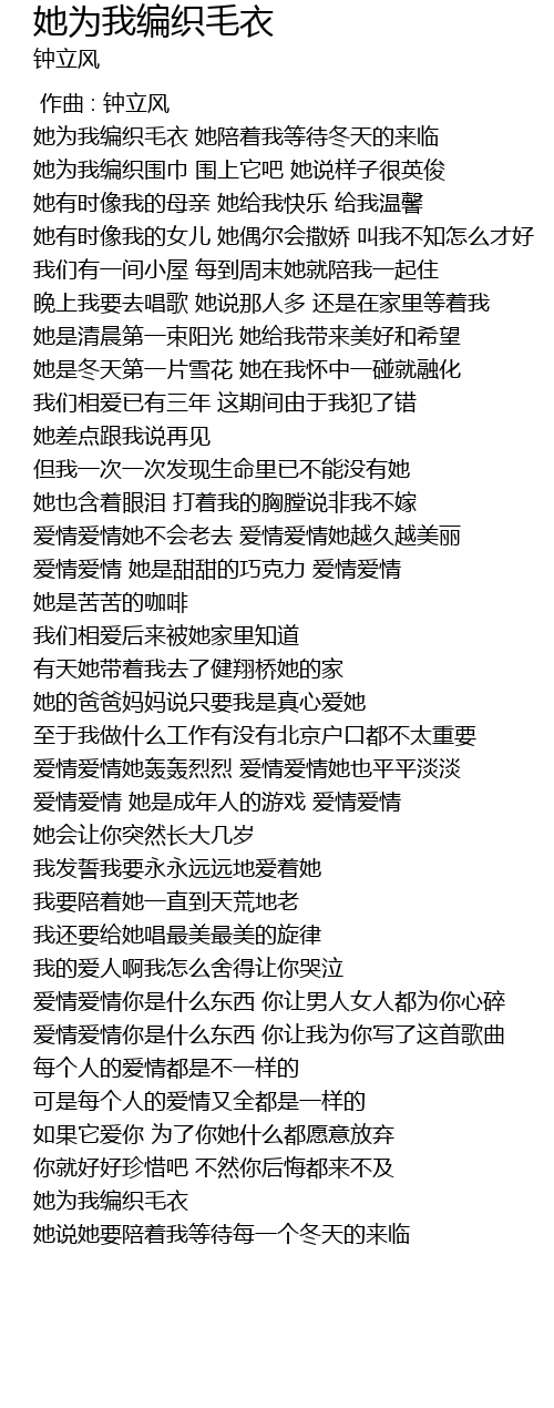 | [06:39.950] | 她为我编织毛衣 她说她要陪着我等待每一个冬天的来临 |
