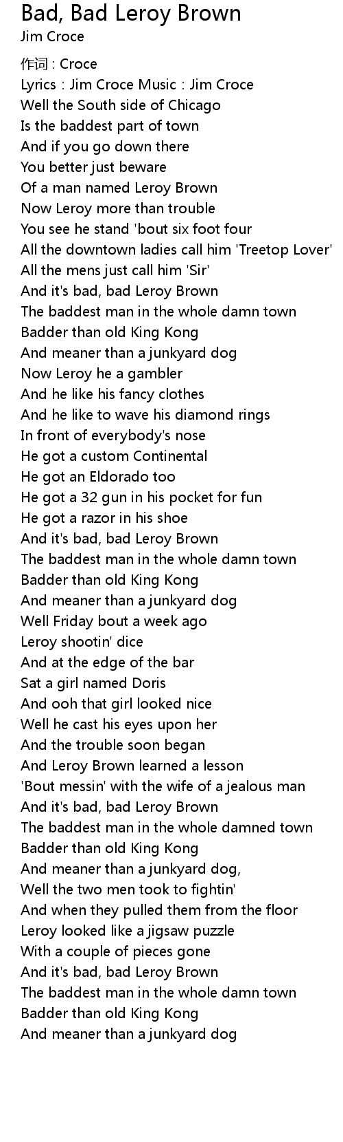 | Lyrics:Jim Croce Music:Jim Croce | |