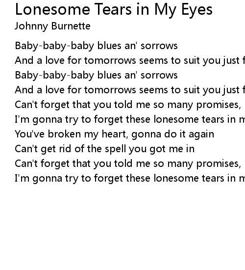 | I'm gonna try to forget these lonesome tears in my eyes |
